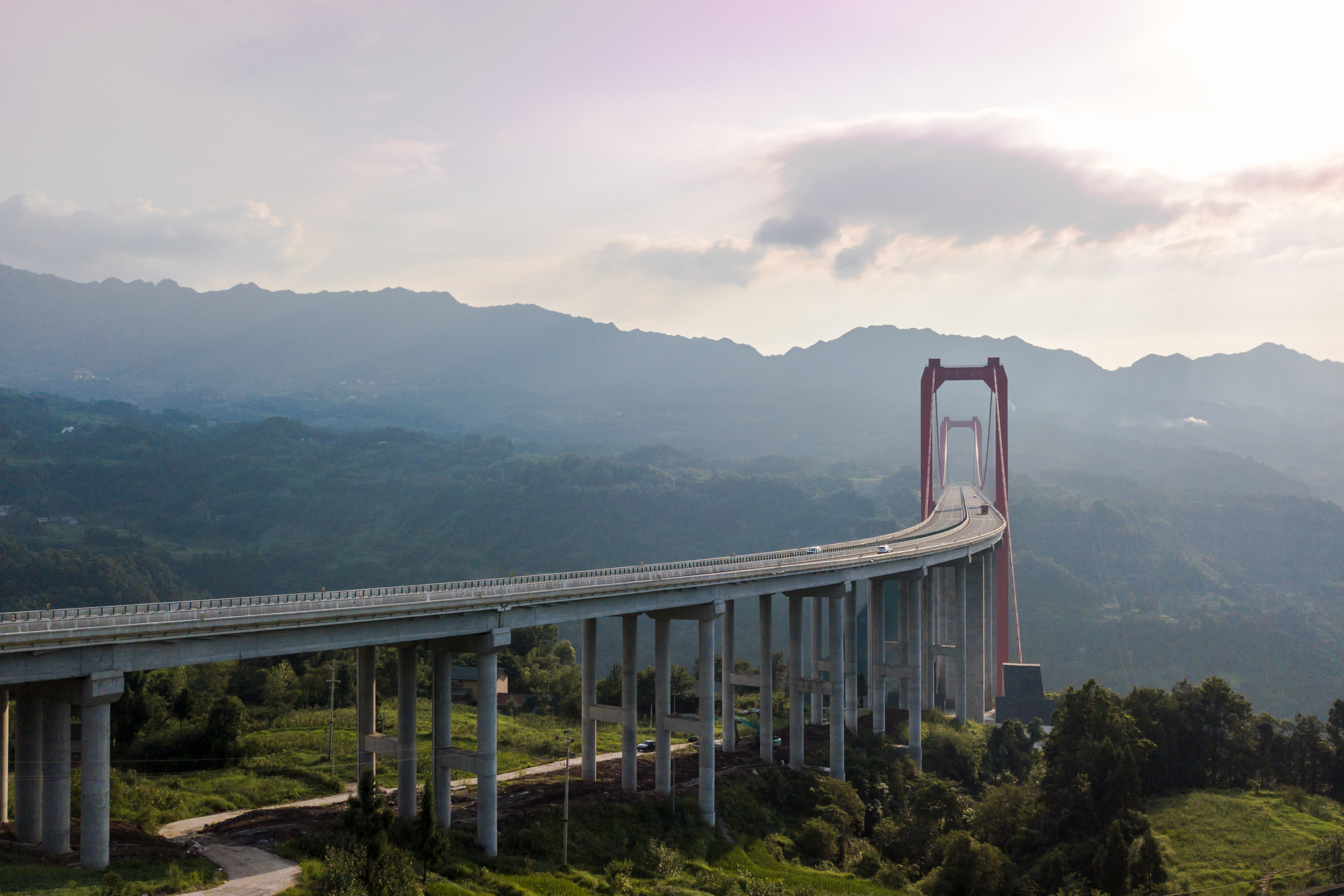 筍溪河大橋橋梁全長1578米,主橋?yàn)?60m鋼桁加勁梁懸索橋,橋面寬24.5米,最大索塔高190.65米,橋面距河谷達(dá)290米,是重慶市第一高橋,重慶市首座山區(qū)大跨度懸索橋、最大跨度鋼桁加勁梁懸索橋。大橋于2015年7月1日開工建設(shè),2018年6月29日建成通車,2019年獲得“中國鋼結(jié)構(gòu)金獎”榮譽(yù)。